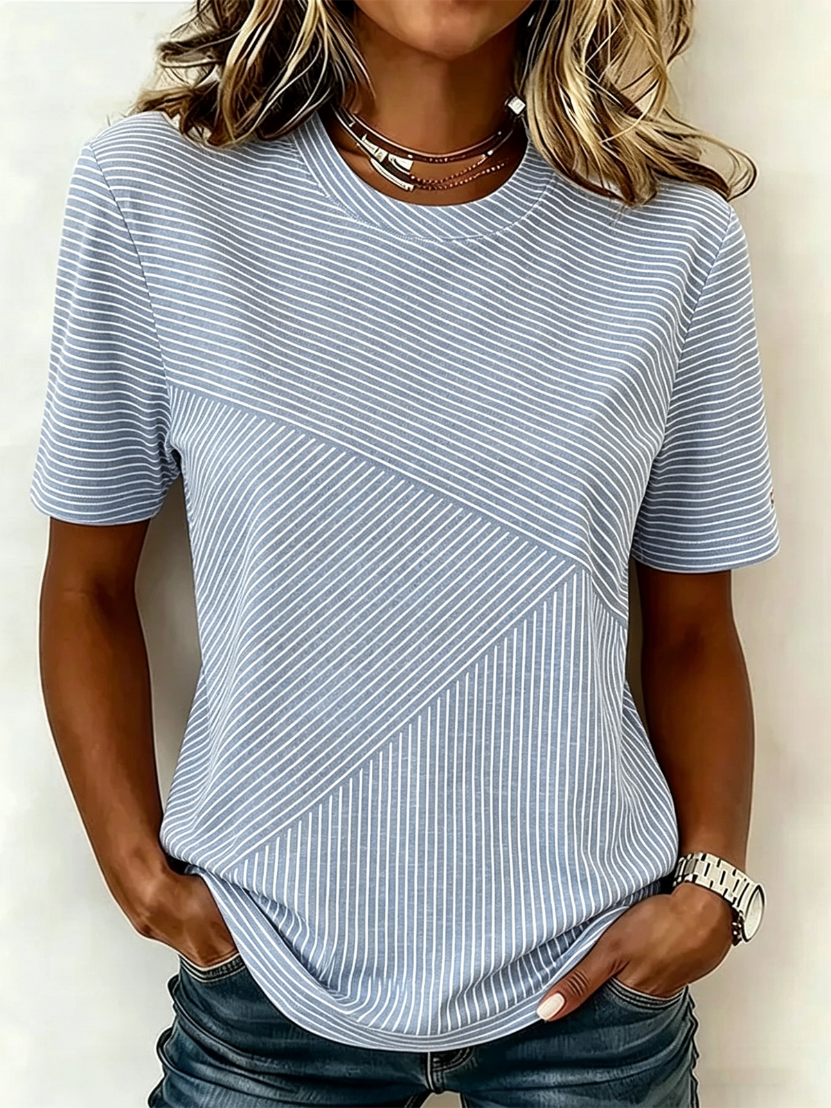 T-shirts Rayé Décontracté Été Coton Coupe Régulière Manches Courtes Col Rond Régulier Régulier pour Femmes