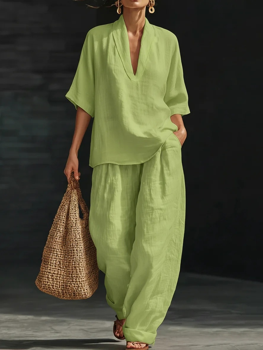 Deux Pièces Ensembles en Lin Plain Printemps / Automne Polyester Naturel Aucune élasticité Quotidien Ample Manches trois quarts pour Femmes